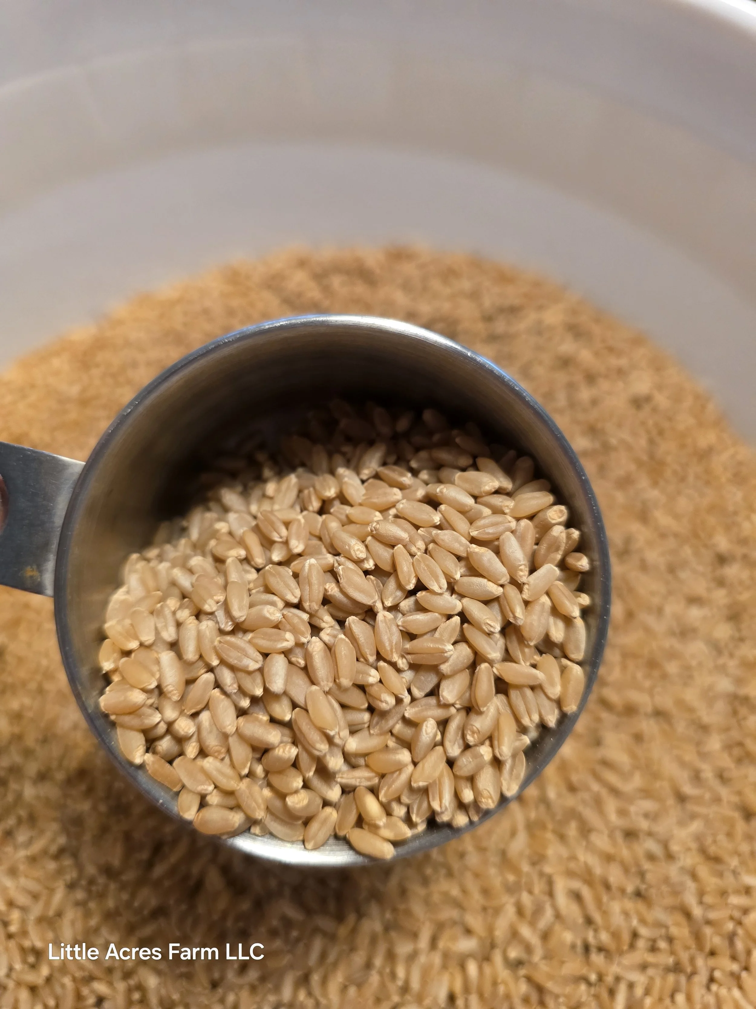 At Little Acres Farm, we mill our flour fresh—right when it’s needed. We start with whole wheat berries and grind them in-house so the flour goes straight into our baked goods while it’s at its peak.